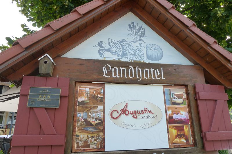 Nach dem reichlichen Genuß der leckeren Speisen ist dringend ein Abendspaziergang nötig. Es war ein langer Tag, den wir mit Fernsehen im Bett beschließen. Andere genießen noch den lauen Sommerabend im Biergarten des Hotels.