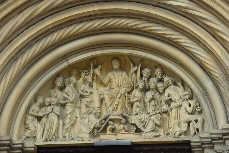 Behinderte Menschen, die an der Prozession teilgenommen haben, drängten sich an der Seite ihrer Betreuer und im Rollstuhl in die Kirche. Die Kirche war bereits voll besetzt mit Teilnehmern der Diözesanwallfahrt für Menschen mit und ohne Behinderung. Da hatten wir keine Chance, noch irgend etwas vom Inneren der Kirche zu sehen. Da wir an dem Gottesdienst kein Interesse hatten, verließen wir die Kirche wieder.