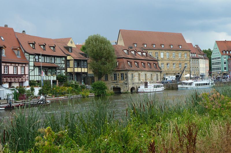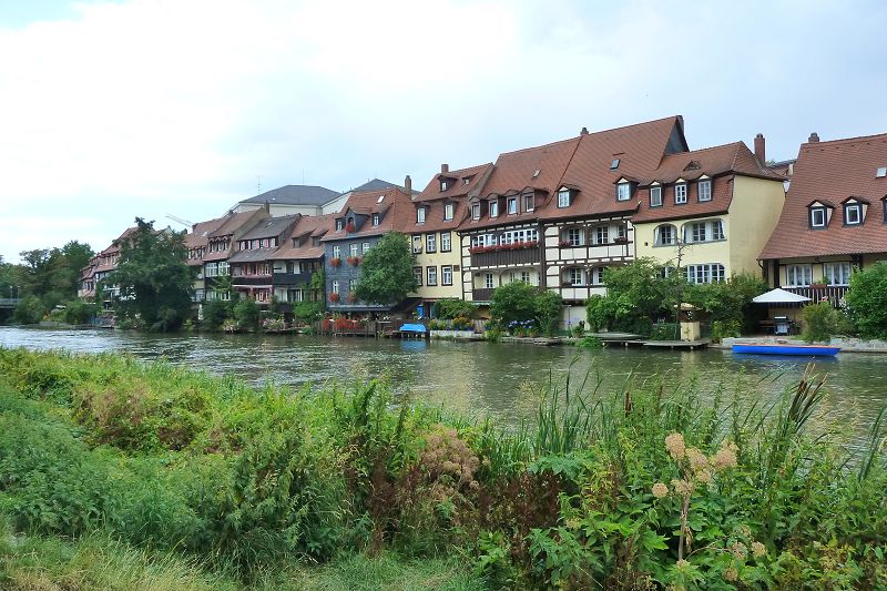 Von der alten Brücke aus ist in der unteren Altstadt, am rechten Ufer der Regnitz, die Häuserzeile "Klein Venedig " zu sehen.