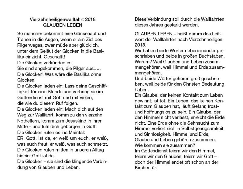 In der Information für Freunde von Vierzehnheiligen finde ich ein schönes Zitat: