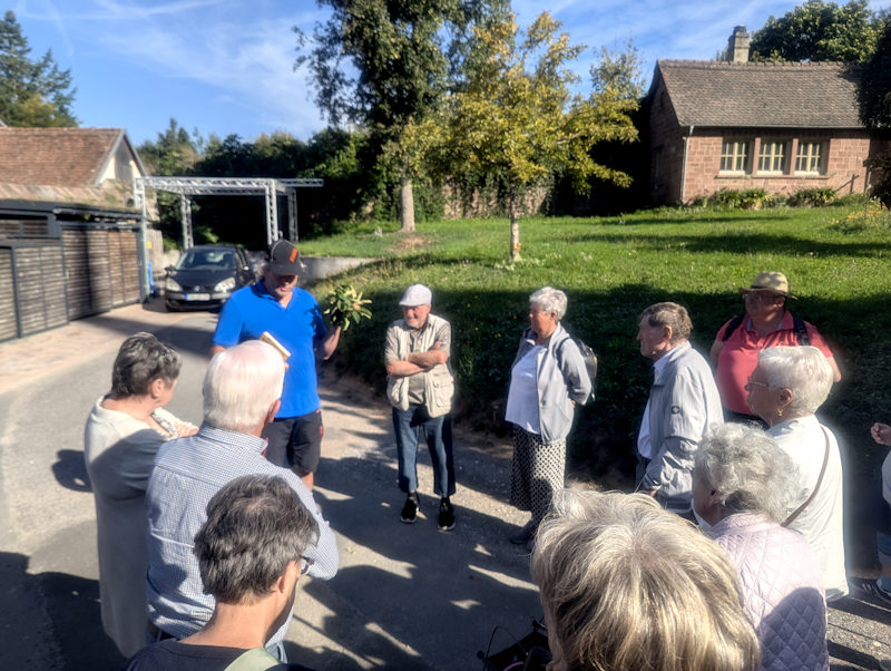 Die erste Station in Bronnbach war der Quittenlehrpfad, wo die Gruppe von Kreisfachberater Thomas Lurz aus dem Landkreis Main-Tauber erwartet wurde.