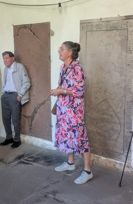 Um 13.30 Uhr begann die Führung durch das Kloster. Die Klosterführerin Karin Pauly entführte die Teilnehmer mit ihrer sehr unterhaltsamen und amüsanten Art in die faszinierende Geschichte der Anlage. Sie erzählte uns von der Gründung des Klosters im Jahr 1153 durch Mönche des Zisterzienserordens aus dem lothringischen Kloster Maulbronn. Wir erfuhren, dass die Zisterzienser als „weiße Mönche“ bekannt waren und sich ganz nach dem Grundsatz „Ora et labora“ (Bete und arbeite) der strengen Askese verschrieben hatten. Auch die eindrucksvolle Klosterkirche und das prächtige Refektorium, das heute als Konzertsaal dient, wurden von ihr lebendig dargestellt. Es war offensichtlich, dass es ‚IHR‘ Kloster war, das sie uns mit so viel Herzblut präsentierte. Ihre Erzählungen machten die historischen Mauern lebendig und sorgten für zahlreiche Schmunzler und herzhaftes Lachen. Die Führung fand ihren idealen Abschluss in einer Weinprobe, bei der die guten Tropfen und die humorvollen Anekdoten der Klosterführerin den Besuch perfekt abrundeten.