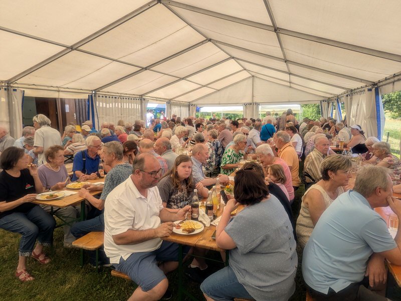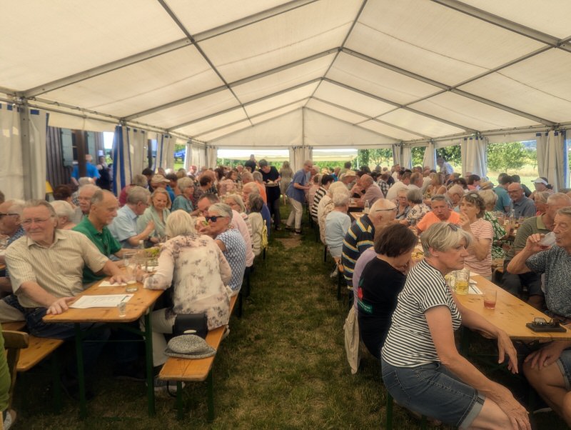 Bei sonnigem Wetter und sommerlichen Temperaturen fanden sich zahlreiche Besucher auf dem Vereinsgelände ein. Bereits am späten Vormittag füllte sich das Festzelt früher als sonst. Bei über 30 Grad hatten sich wohl einige der Besucher früher auf den Weg gemacht.
